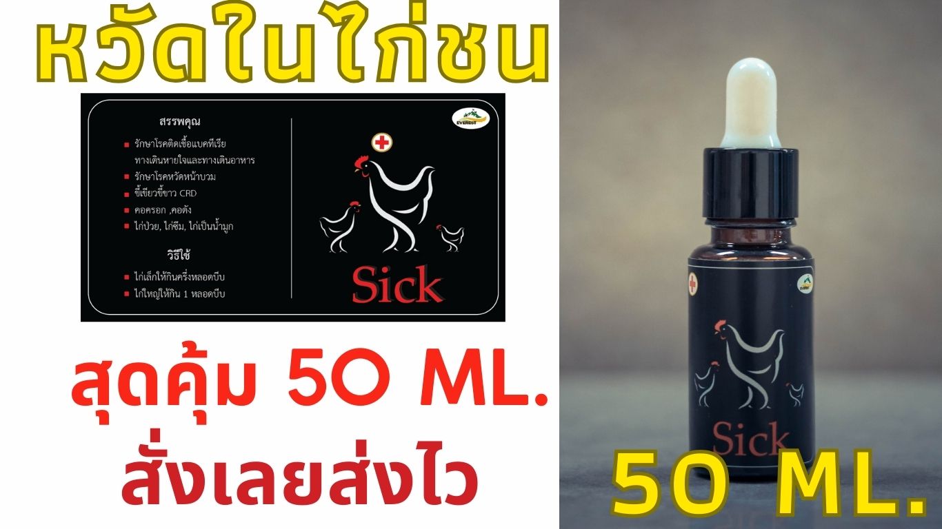 sick รักษาหวัดหน้าบวมในไก่ชนไก่ป่วยไก่ซึมไก่ยื่นไม่ได้เเข้งขาอ่อนเเรง sick ขวดใหญ่ขนาด 50 ML.